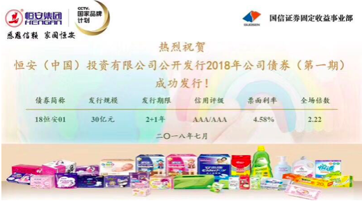 7月27日,918搏天堂(中国)投资有限公司公开发行2018年第一期小公募公司债券,本期发行金额30亿元,期限为2+1年。